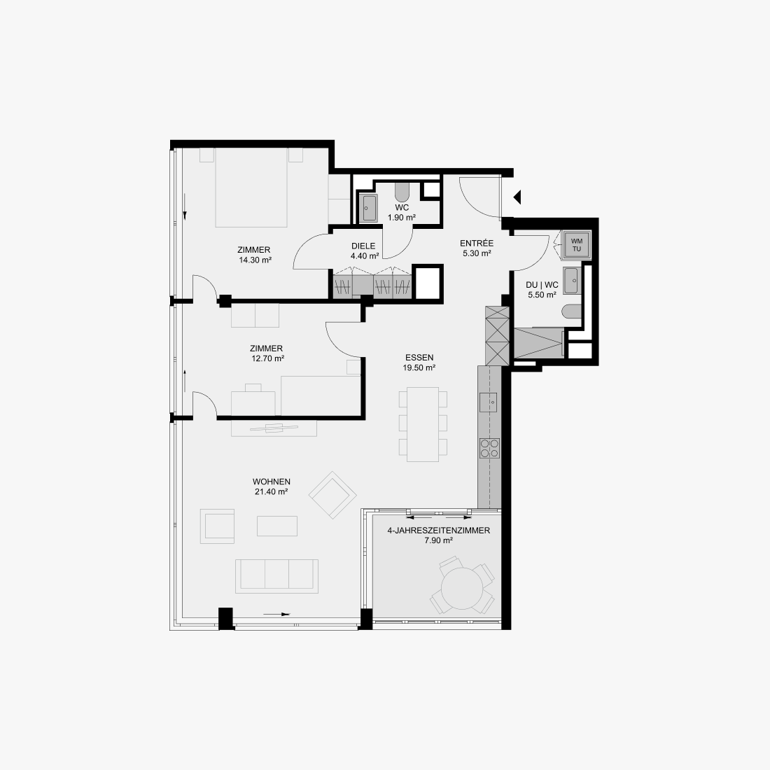 Im ALTO entstehen 149 Wohnungen mit 1.5 bis 4.5 Zimmern – entworfen für Menschen, die urban wohnen und dennoch Raum für Ruhe, Licht und Ausblick schätzen. Klare Grundrisse, grosszügige Fensterflächen und sorgfältig gewählte Materialien schaffen Wohnräume, die sich flexibel an unterschiedliche Lebensentwürfe anpassen.
